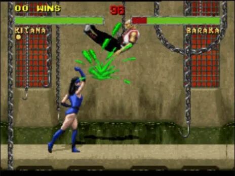 1994年左右,任天堂考虑到大量低龄玩家,特意将《真人快打2》里的血液效果换成了绿色,还把终结技出现的画面改成了黑白双色。但结果可想而知,谁的血管里会淌出绿血呢,又不是什么“卫斯理”系列继“蓝血人”后的续作“绿血人”。