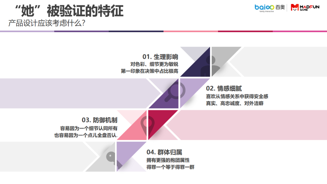 首先,生理影响。女性玩家对色彩、对细节更为敏锐,第一印象在决策中占比非常高。