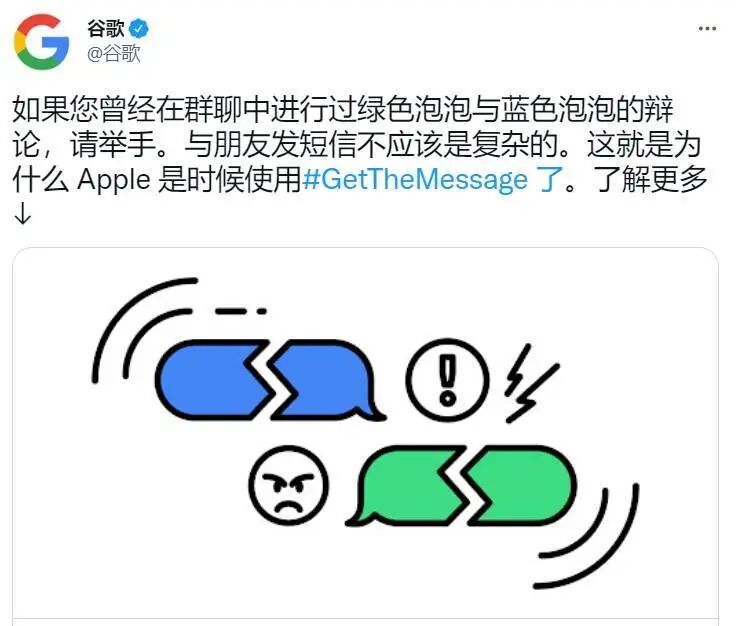 今年初,为了短信气泡的蓝与绿,美国青少年陷入「社交裂缝」。绿色气泡和蓝色气泡,被划分为不同的阵营,以颜色隐喻 iPhone 和 Android 手机之间短信沟通的不畅。裂缝两边,一个是文字通讯的史前时代,一个是媒体丰饶的当代。在这里,蓝色比绿色高贵,「弃暗投明」的方式是拥有一台 iPhone。山不来就我,我就山。8 月 9 日,Google 向苹果叫阵——是因为苹果不支持 RCS(富媒体通信服务),才导致了「蓝绿气泡之争」。当 iOS 用户接收来自 Android 的跨设备信息时,短信会以绿色气泡框显示。这本来没什么奇怪,在 2011 年苹果推出免费通信服务 iMessage 之前,气泡基本都是绿的。为了与传统 SMS 短信区分,苹果才将 iMessage 的气泡设计成蓝色,为将来的蓝绿之争埋下伏笔。热爱用短信聊天的美国人不喜欢绿色气泡,他们更喜欢 iMessage 的蓝色气泡。颜色本身是中性的,但它代表着截然不同的体验。iMessage 提供端到端加密功能,支持文字、图片、视频、语音、群聊,还加入了隐形墨水、缩小、放大、屏幕回声效果等特效,数据通过流量或 Wi-Fi 传输。这些功能为现代通讯所需要,也是 Whatsapp 等即时通讯软件必须提供的。问题在于,iPhone 和 Android 用户之间发送的短信,会被转换为 SMS 和 MMS(彩信服务),前者在不同设备间发送纯文本信息,后者只能加入有限的图片、背景音乐,被 Google 称为「90 年代和 00 年代的过时技术」。从 iMessage 回到 SMS、MMS,就有了由奢入俭的落差感,照片和视频被压缩,没有已读和输入中的提示,不支持端到端加密,亮绿色背景上的白色文本难以阅读......「绿色气泡」歧视,甚至成为了一个社会问题。部分美国青少年深感社交压力,为了使用 iMessage,将自己的手机换成了 iPhone。但 Google 认为,不必要花钱换手机,iOS 和 Android 互发短信的糟糕体验是由苹果造成的,苹果应该从 SMS/MMS 切换到现代行业标准 RCS,从而解决这个问题。RCS 是一种跨平台消息传递协议,被视作 SMS 和 MMS 的继承者。Google 称,大多数运营商和 500 多家 Android 设备制造商都支持 RCS,但苹果不支持。1992 年诞生的 SMS 短信,除了接收验证码、广告、快递通知,基本别无他用。iMessage、Facebook Messenger、WhatsApp 等,要么下载 app 要么限定操作系统,都不是通用的解决方案。所以,Google 希望通过 RCS 这个传统短信的升级版,真正实现跨平台消息传递。RCS 功能比传统短信丰富得多,支持图片、文字、语音、视频、群聊和文件传输等多种即时通信功能,并让你知道对方是否已读和正在输入中。它还支持 B2C 服务,企业可以向用户推送图文信息,用卡片的形式提供类似「小程序」的交互界面。简言之,RCS 像是跨平台的 iMessage,又不需要依赖 app,而是直接整合到操作系统中,和手机号绑定。理论上,不同运营商的用户知道对方的手机号,不用加好友,就能免费聊天。而在本质上,RCS 是一种协议,可在 iOS 和 Android 上使用,并提供 iMessage 的许多功能,和即时通信服务并不等同。RCS 拥有 iMessage 的大部分功能,但不是全部。RCS 在 2019 年还不支持端到端加密,现在一对一聊天的端到端加密已经推出,群聊中的端到端加密将于今年晚些时候推出。近几个月来,Google 一直要求苹果支持 RCS,甚至建了一个「Get The Message」网站,并在 8 月 9 日发起了一项宣传行动,呼吁用户发声:如果你正在与 Android 用户发短信,将无法更改气泡颜色或避开 SMS、MMS 的限制。但苹果可以采用 RCS 并使这些对话变得更好。你可以 @Apple 并带着 #GetTheMessage 话题发推文。