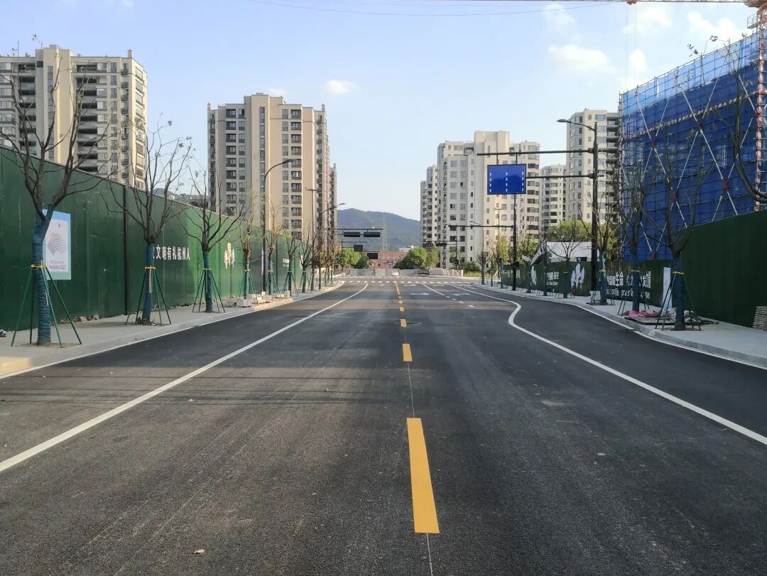 张家墩路一期西起红义桥段,东至圆满路,全长约1728m,红线宽28m。项目分为一标段和二标段,其中一标段于今年6月完工,二标段建设内容包括道路工程、通信管道工程及绿化工程等道路附属工程。车行道采用沥青混凝土路面;人行道采用花岗岩铺装;绿化工程主要为道路两侧树池内行道树(榉树、早樱),目前二标段项目已通过塘渣验收,剩余人行道铺装、绿化等工程量,计划9月完工。