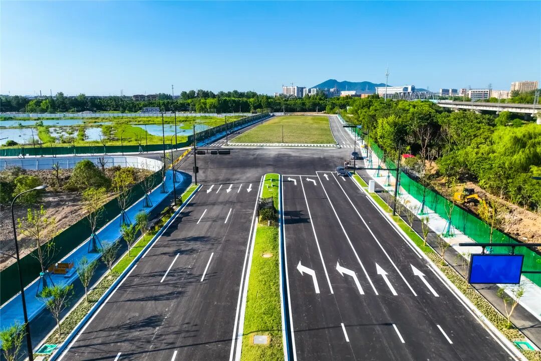 从路面缓缓驶过,平坦宽阔的路面、清晰有序的标识线、美观养眼的沿路景观绿化带......建成后的崇贤新城横十一路一期未来将成为周边居民和学生出行便利的通道,并为周边地块开发提供便捷的交通。