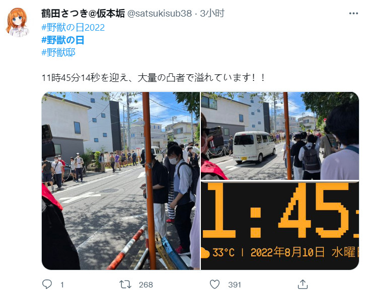 尽管大家都知道,不可能再在这里见到当年的野兽先辈,但今年大家依旧延续了这一传统。在8月10日这天,不少日本当地的青年,都汇集到野兽邸附近。有的人甚至从前一天晚上,就开始在此蹲点,只为在“野兽之日”到来的那一刻,获得和先辈神交的机会。