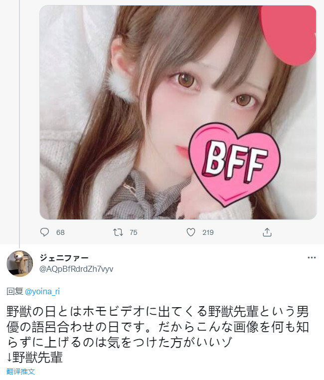 但其中偶尔也会有些不“合群”的作品出现。比如,今年就有很多日本妹子,会在自己当天的自拍推文中,加上“野兽之日”的标签。