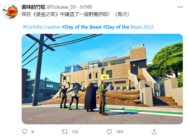 而到了玩家阵营这边,自然少不了用游戏来和先辈进行联动。比如,有人就在《堡垒之夜》中,打造了一座“野兽邸”。