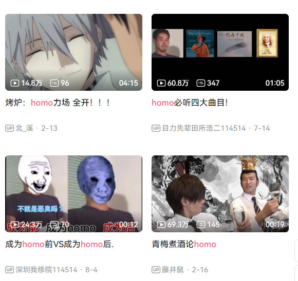 不得不说,这部影片的造梗能力实在是过于强大。就在最近,又有观众开始以“HOMO”(英文单词“Homesexual”的缩写,同时在日文中也有指代“男性摔跤”的意思)这个词,来恶搞野兽先辈在影片中的表现。“HOMO特有的半笑”“HOMO特有的急性子”等类似的句式,如今也常常出现在野兽先辈相关视频的评论区里。