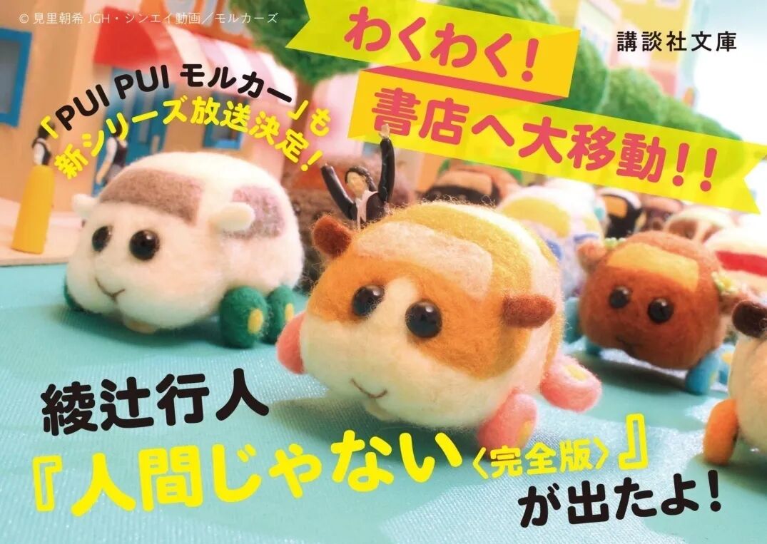 动画第一季的内容里,就有一集讲述的是天竺鼠丧尸病毒的扩散,但依然只会激起观众的“猛男之心”;此前日本知名恐怖推理作家绫辻行人沉迷羊毛毡后,今年也被官方找上,推出了他的短篇集《非人类》再版和《天竺鼠车车》第二季的联动宣传。