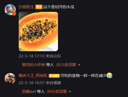 鉴于许超医生发帖经常会被渣浪无故“夹”掉,他还想到了“以形补形”的表达方式,用水果、蔬菜等道具,形象地完成了审核无法通过的科普任务。