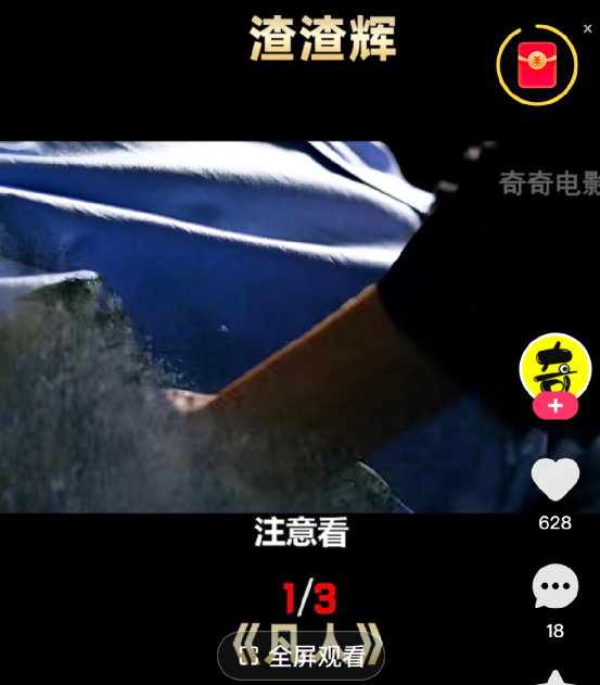 而根据短视频平台用户快速获取信息的习惯,这些视频绝对会在开头的十几秒钟内,就放出整部电影中最具视觉冲击,或者最有噱头的片段。比如说一场离奇的凶杀案,或者是主角某个奇怪的举动。再配上“注意看”“别眨眼”等颇具诱导性的话术,让观众第一时间被影片的情节所吸引。
