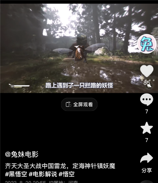 昨天刚公布的《黑神话:悟空》最新演示,已经有了短视频解说版