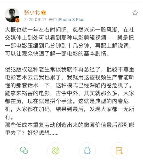 即便抛开这些观众之间的争议不谈,电影解说类视频风靡后,损失最大的,说到底还是影视作品的版权方。