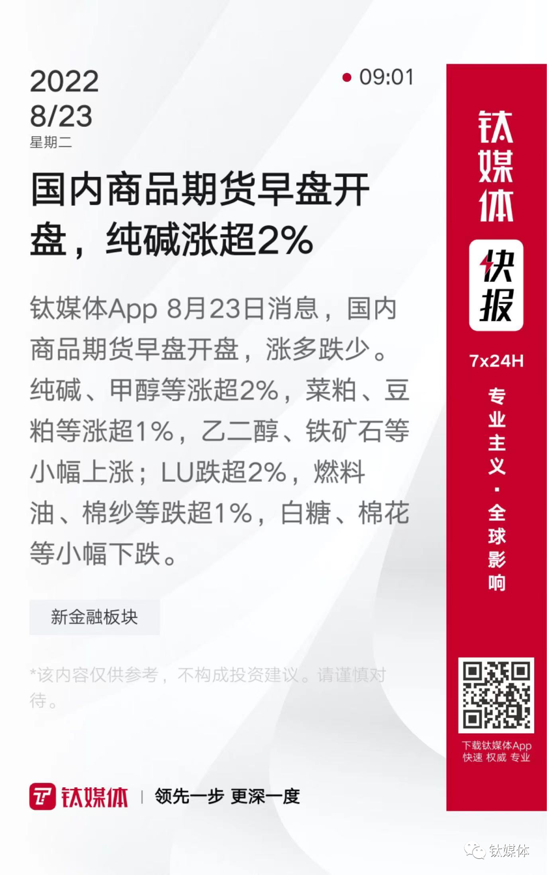 【国内商品期货早盘开盘,纯碱涨超2%】