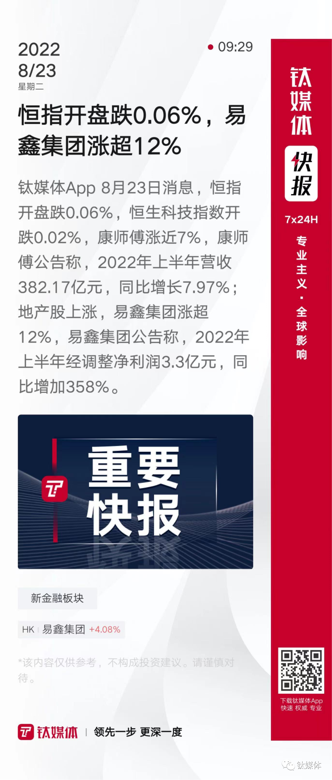 【恒指开盘跌0.06%,易鑫集团涨超12%】
