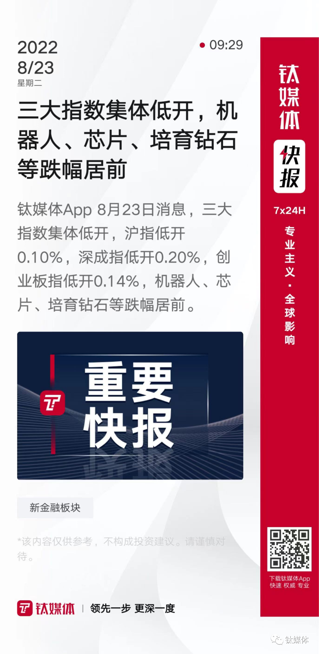 【三大指数集体低开,机器人、芯片、培育钻石等跌幅居前】