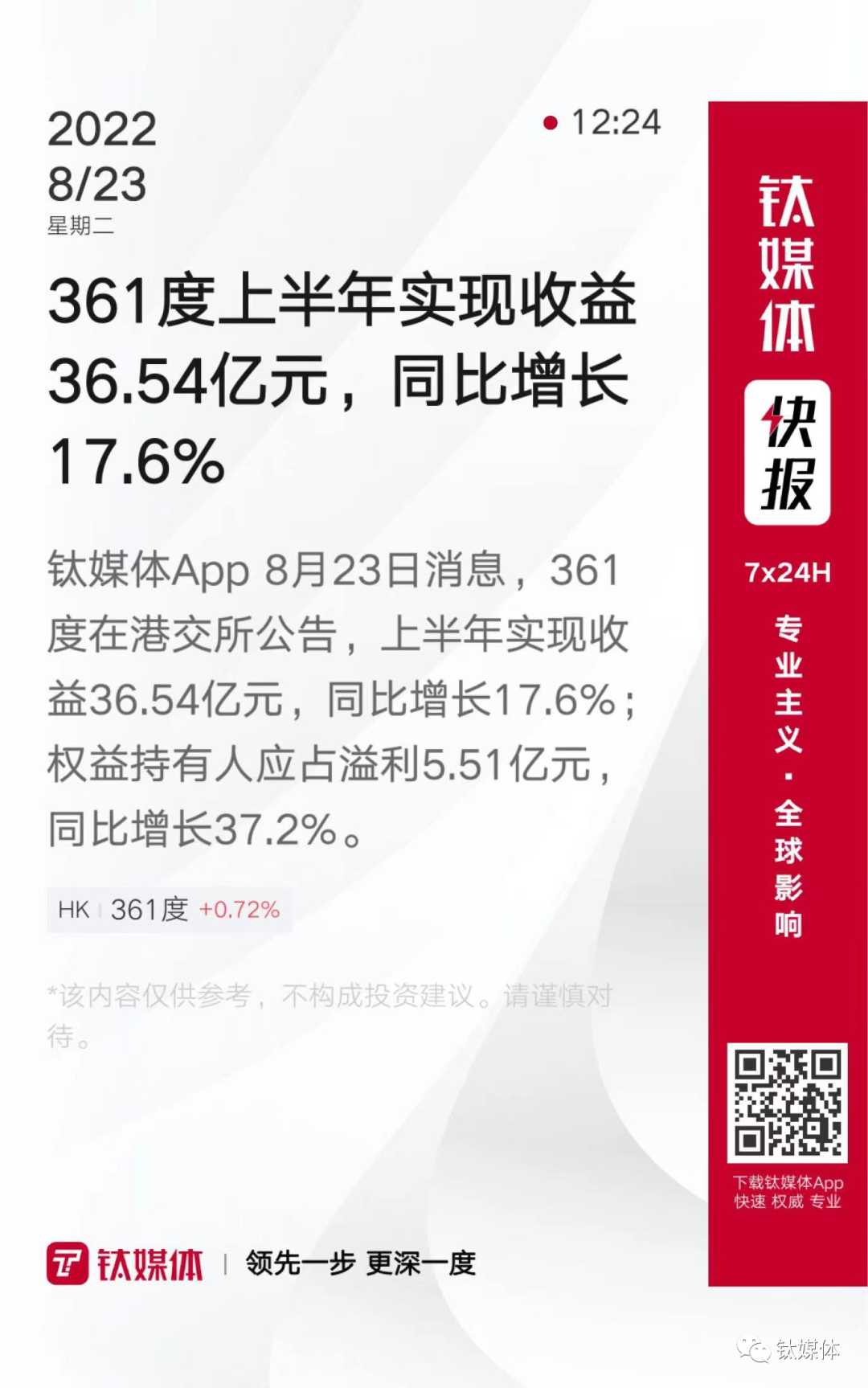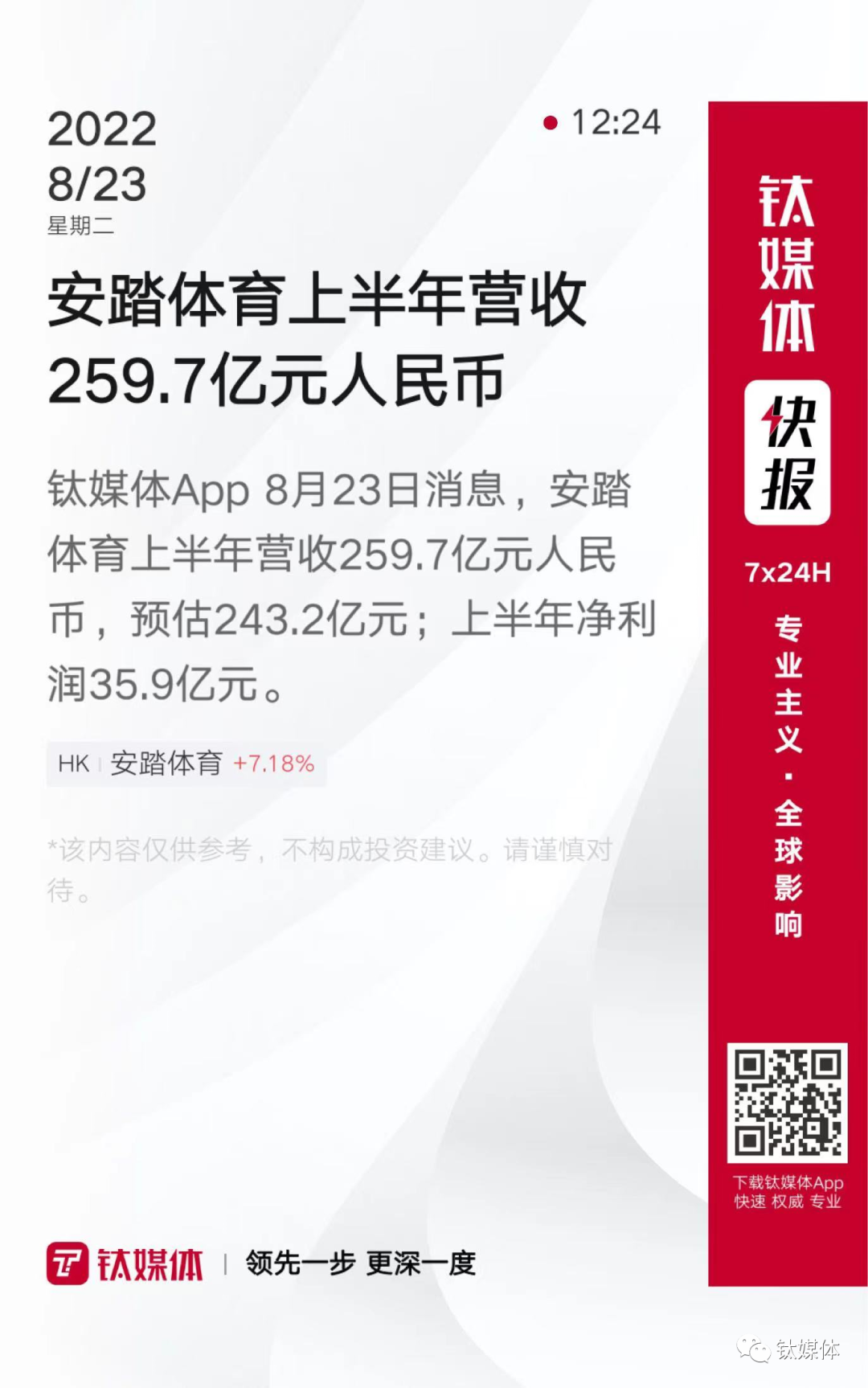 【361度上半年实现收益36.54亿元,同比增长17.6%】