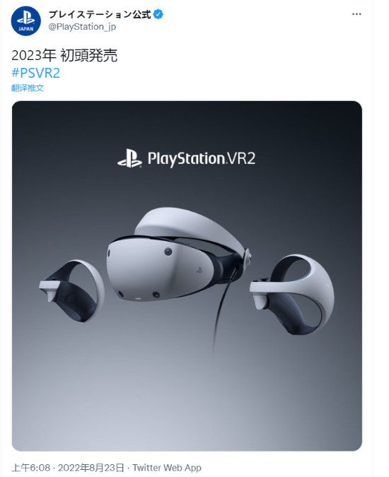 Playstation官方推特发布消息,其下一代虚拟现实头显PS VR2将于2023年初推出。