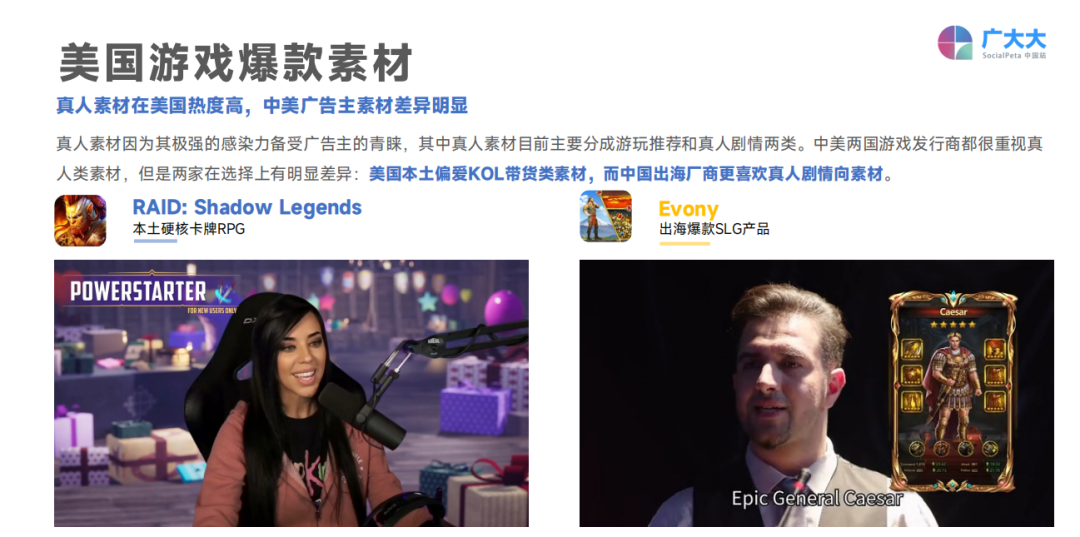 前三中的另一个《2022全球手游营销&优质创意》报告由广大大出品,营销创意素材作为出海游戏营销的一大重点,该报告中涵盖了全球热门国家、地区的素材鉴赏以及热门类型手游的素材鉴赏。