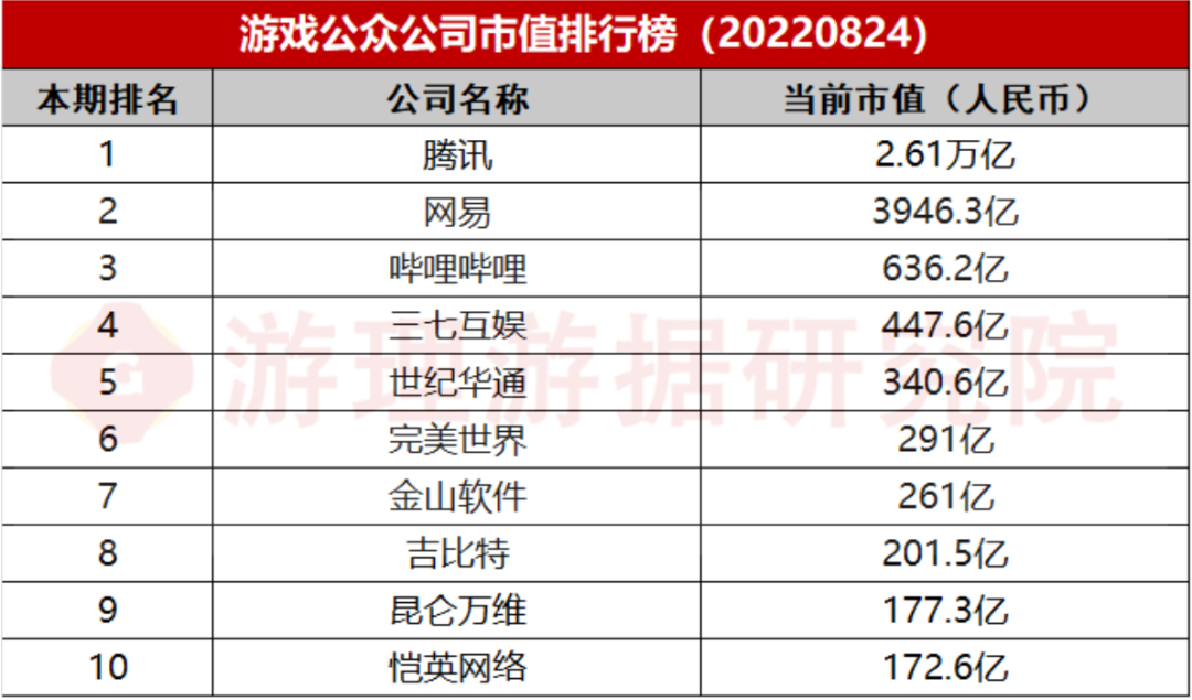 在上期【游戏公众公司市值排行榜】(点击查看)栏目中,我们曾预测本周内恺英网络若能保持此前增长态势,将首次进入榜单TOP10。但前两个交易日恺英网络股价增势不再迅猛,距离进入前十始终相差一两亿,而本日这家公司以0.3亿的市值优势超越巨人网络成功拿下第10位。只不过实现超越的方式是——单日股价下滑幅度比巨人网络小。