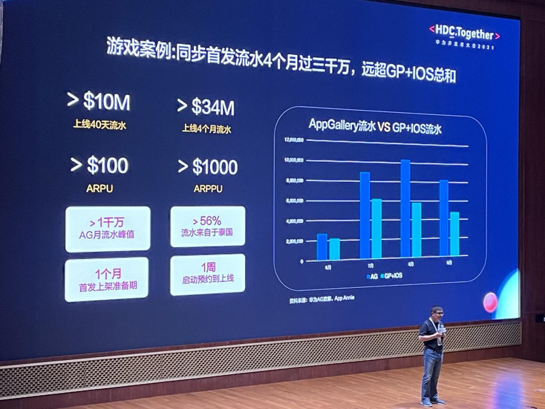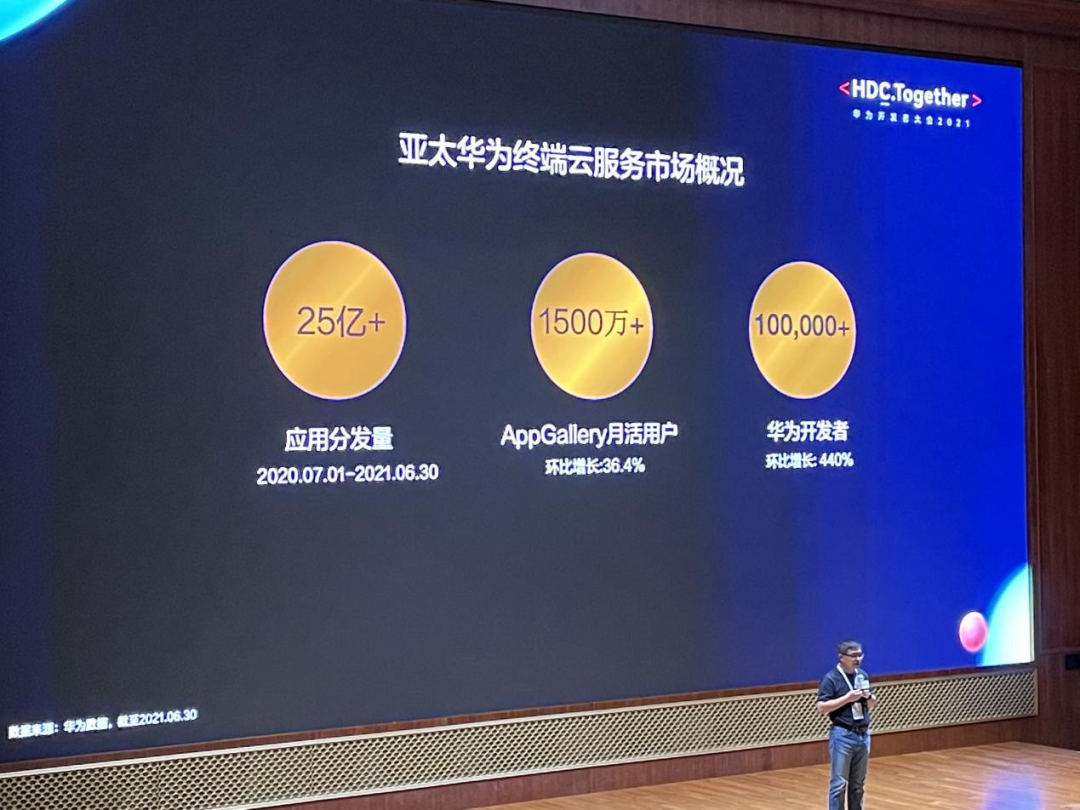 首先,我们看一下大盘的量。华为在亚太整体市场上,我们APPGallery从去年到今年6月份,整体的分发量达到了25亿。同时,我们APPGallery的月活超过了1500万,而这个月活其实就是我们游戏落地的一个主要的支撑。另外,我们也聚合了10万开发者的发展,可以说华为现在的市场表现是比较好的。