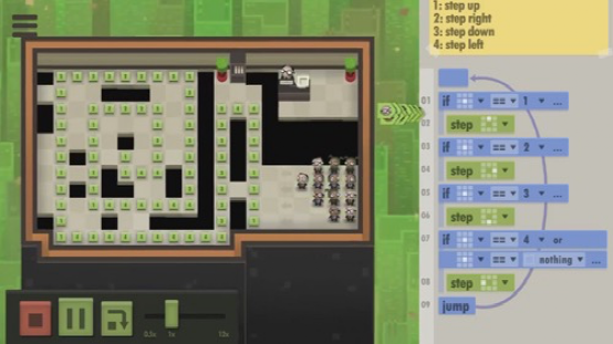 和上面的《BABA IS YOU》一样,《70亿人类》同样是一款不考验操作,但很烧脑的游戏。本作是一款“码农游戏”,也就是以编程为核心玩法。游戏的内容风趣诙谐,夸张搞笑,但在编程解谜部分的难度却也毫不含糊。玩家需要整理自己的解题逻辑,实现关卡的要求。而游戏需要的不仅仅是“实现方案”,甚至还需要考验玩家解题的算法优化。以至于许多玩家在游戏过程中只能勉强“过关”,而无法获得满星评价。后期的一些关卡,甚至能难倒不少大神。因此如果不是对自己的逻辑思维能力和编程能力有足够的信心,请不要轻易尝试这部作品![]()