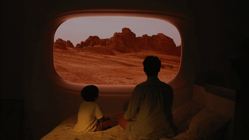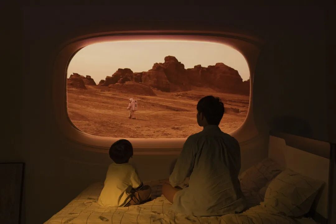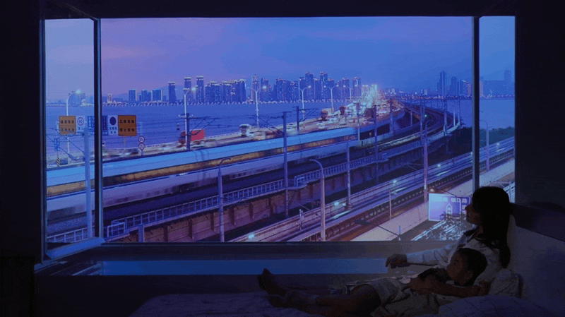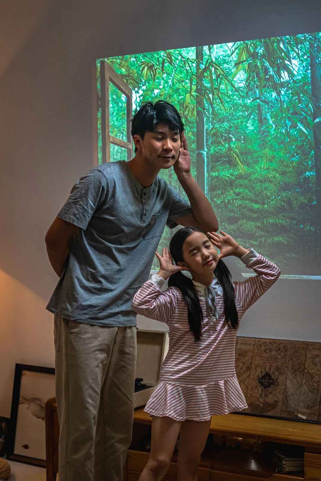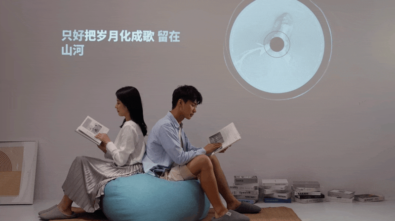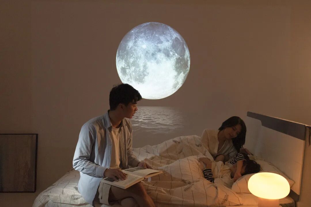 但随着投影画面亮起,随即改变了墙面乃至居住空间的氛围。