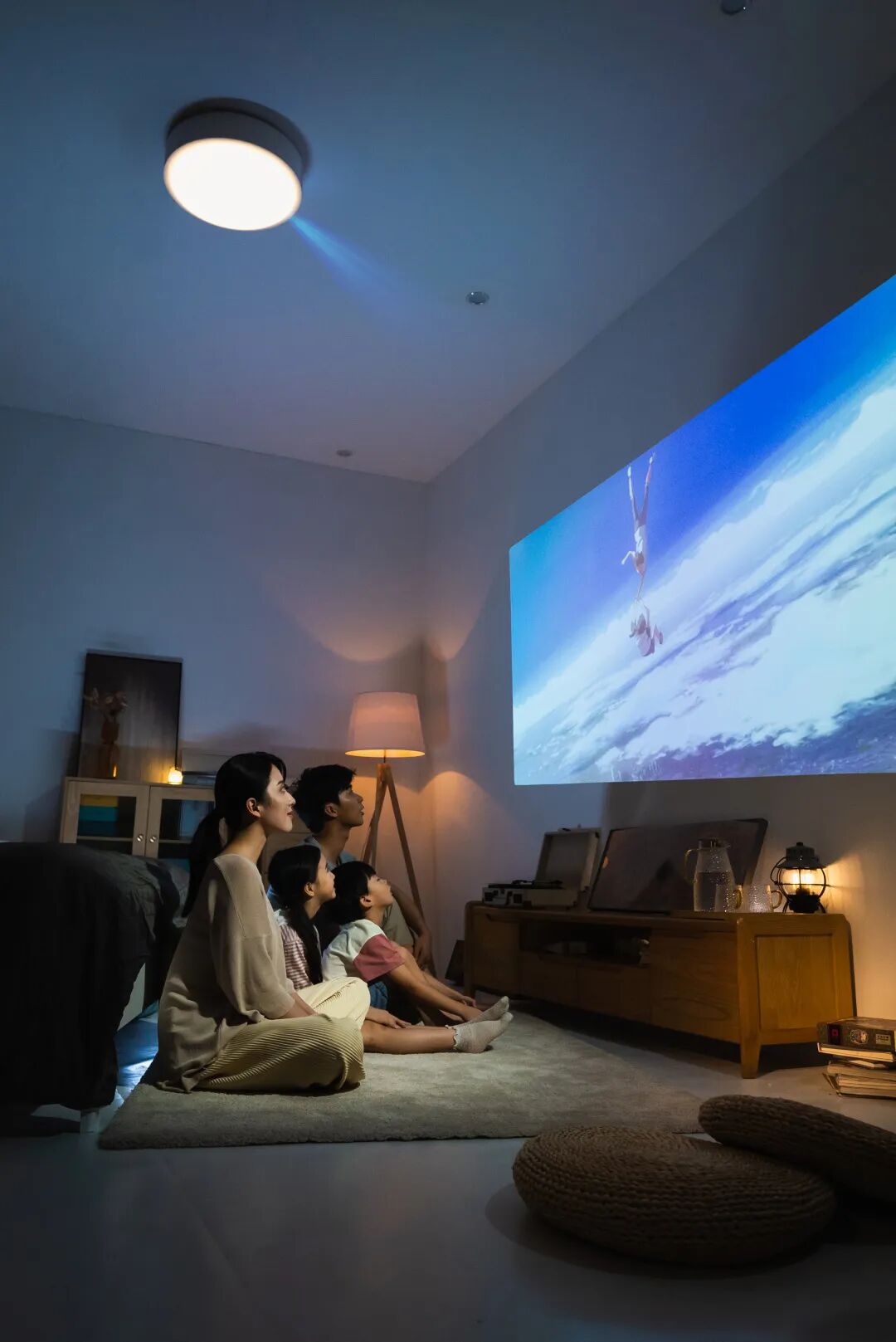 最重要的是,吸顶灯的形态注定这盏「神灯」一旦安装好、调试好之后,它的对焦和画幅大小都将被调节固定成最佳状态。也就是说,无论之后用户把它开开关关多少次,它的画面表现几乎都不会有任何变化,画质都不会受到一点损害。