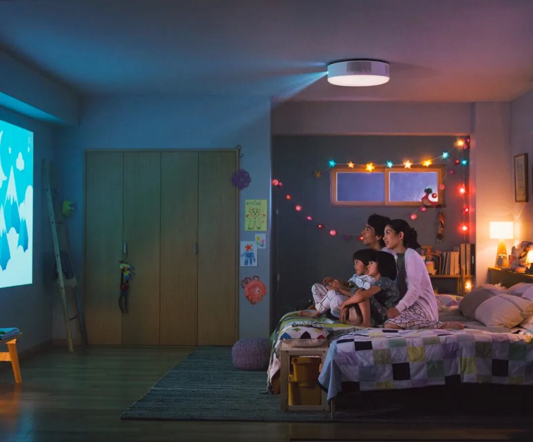 「极米神灯」将投影仪藏入室内空间本就存在的吸顶灯里。