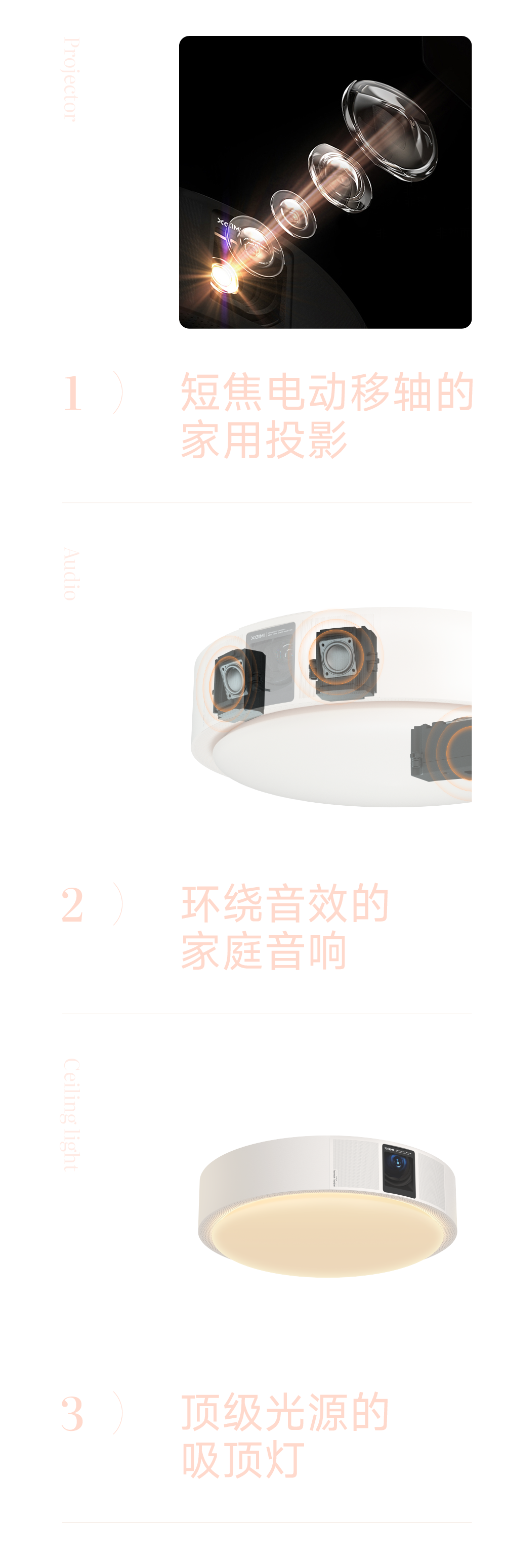 但要将投影、音响、吸顶灯巧妙地融于一体,并置于天花板之处,正如把大象搬进冰箱,并非易事。