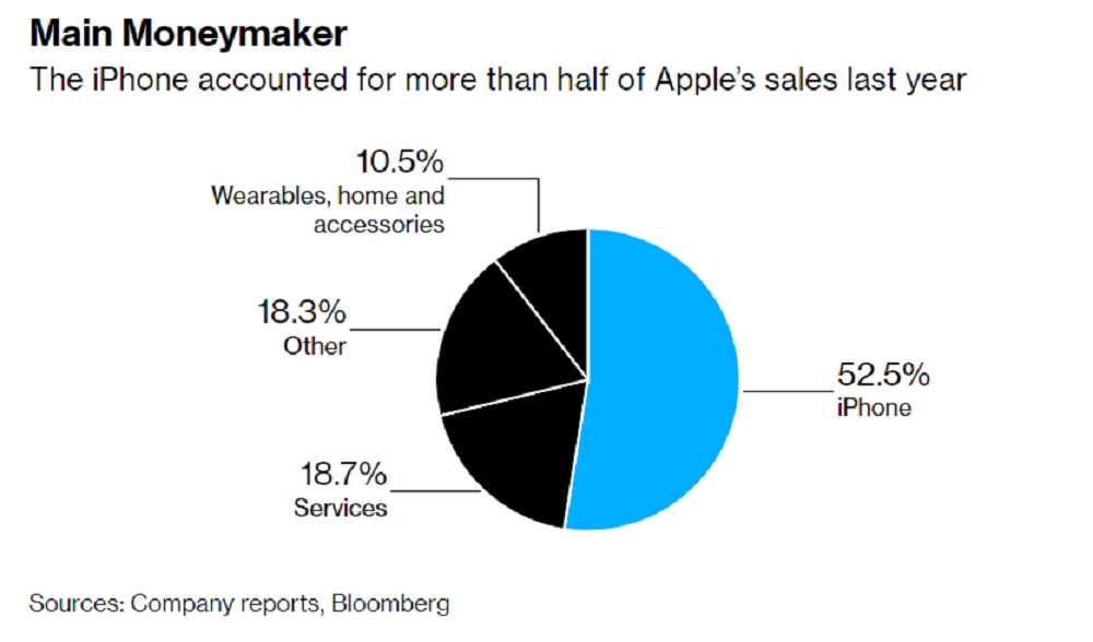 ▲去年iPhone销售额占苹果总销售额的52.5%