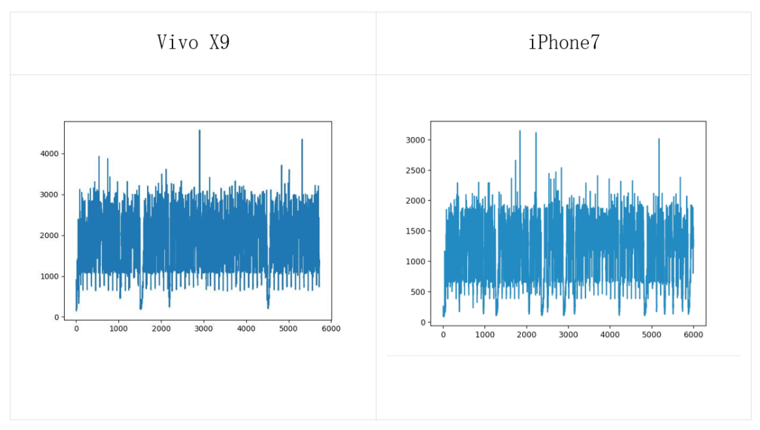在LizhiDenoiser的模型前向推理过程中,我们没有使用开源的推理框架,而是使用自研的推理框架,不使用开源推理框架原因有:分别测试了iPhone和Android较低机型的性能,这里主要采用cpu消耗和实时率来度量LizhiAiDenoiser的性能。因为模型设计比较精细,参数占用比较小,cpu占用不超过3%。实时率是指处理每帧音频所要花费的时间,通常是处理整个音频来统计总的耗时,再除以音频的总帧数,得到平均每帧耗时,这种方式在实时率要求比较高的任务中是很难有说服力的,因为此时任务比较单一,CPU利用率比较高,所以总的耗时统计大大减少。我们在统计实时率时采用最真实的统计方法,即在RTC应用中统计每帧音频的真实耗时情况。统计情况如下:说明:上图中横坐标是音频帧数,每一帧10毫秒,纵坐标是每一帧经过LizhiAiDenoiser降噪耗时,单位是微秒。从图中可以看出,android较低机型实时率不超过0.3,iPhone较低机型实时率不超过0.2。