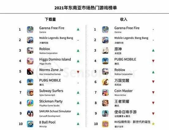 值得提出的是,东南亚地区的产品竞争,尤其是头部产品间的竞争,正逐步从国产游戏 VS 本土游戏,转变成国产游戏之间的内战,甚至是国产游戏 VS 跨国巨头的擂台。