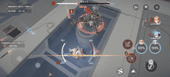 因此,《终末阵线:伊诺贝塔》为了让更多休闲向的二次元玩家能够感受到机甲游戏的乐趣,选择了相对更为简单的弹幕玩法。在战斗中,我方机甲发射的弹幕都会自动索敌,而玩家大多数时候只需要操纵机甲躲避敌方弹幕,同时在合适的时机释放技能,来完成破甲等特殊攻击模式。