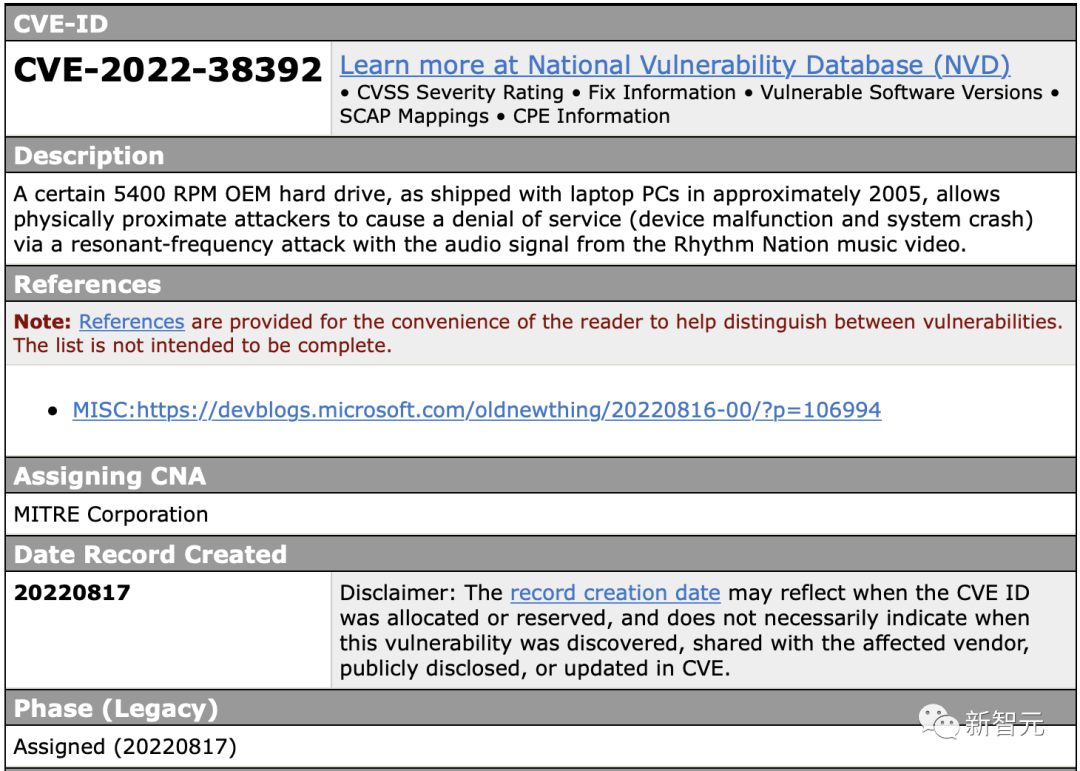 在那个被Windows XP统治的时代,有着这样一个传说。只要播放珍妮·杰克逊的「Rhythm Nation」这首歌的MV,你的笔记本电脑就会崩溃。而且更加诡异的是,放在周围的电脑,也会闻声宕机……为了搞清楚问题所在,一头雾水的制造商开始着手对竞品的笔记本电脑进行测试。好巧不巧的是,其他公司的部分机型也会出现相同的症状。而这个听起来像都市传说一般的漏洞,最近已被Mitre授予了正式的CVE ID,可信度直接拉满。(手动狗头)