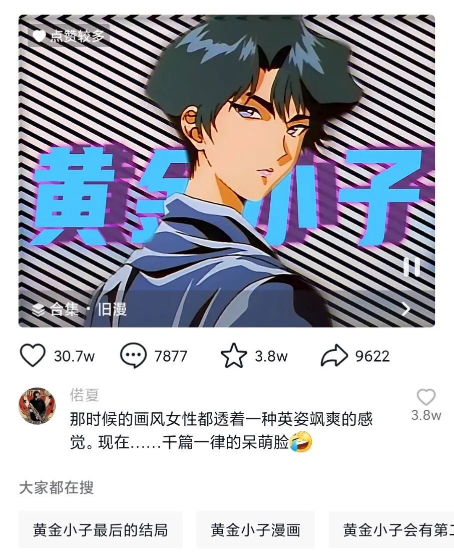 90后乃至一些80后 “大龄二次元”的回归,是短视频世代的一个常见现象,连带着让这一群体时常带有怀旧的属性。即便不讲“迪迦奥特曼”这类已经有些泛滥的例子,像是《黄金小子》这样本来在国内动漫圈中算不上热门的老作品,此前也在抖音上意外翻红。