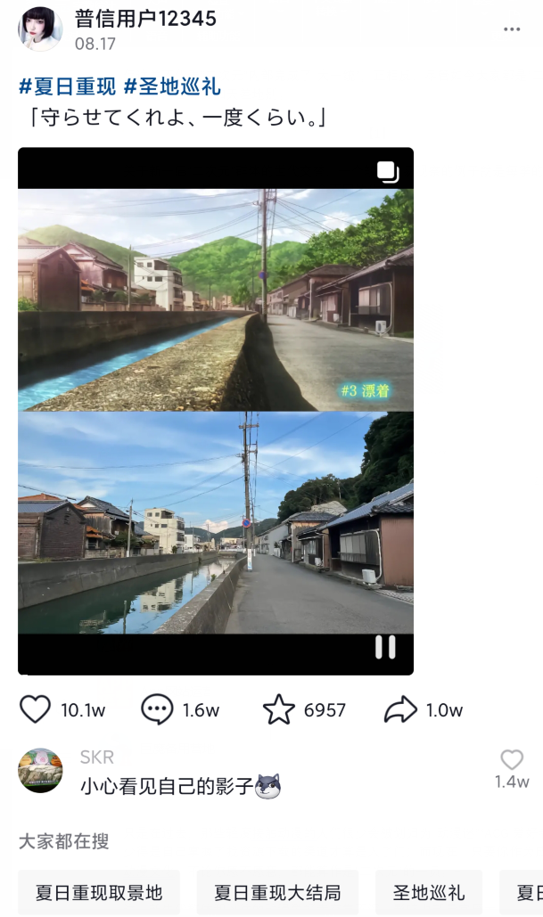 在抖音上,《夏日重现》这样剧情更有讨论度的动画,无论是故事解读还是周边二创都明显更热门