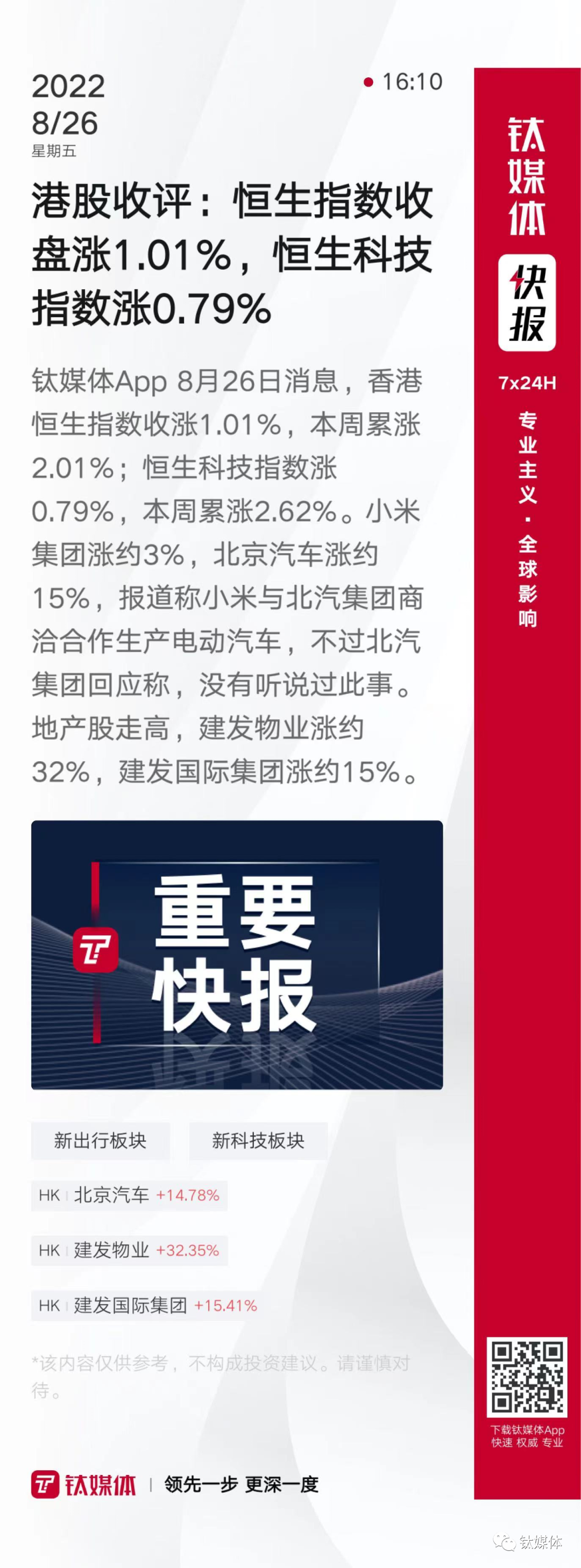 【港股收评:恒生指数收盘涨1.01%,恒生科技指数涨0.79%】