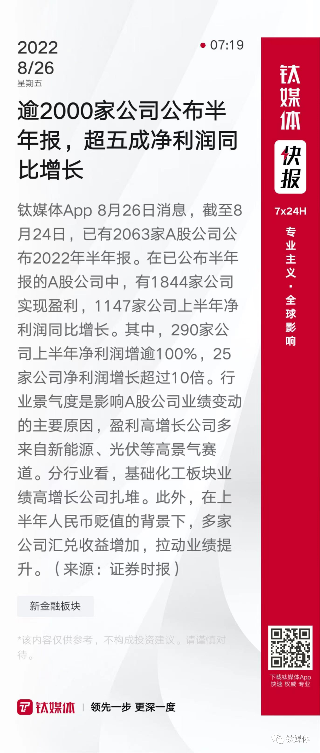 【逾2000家公司公布半年报,超五成净利润同比增长】