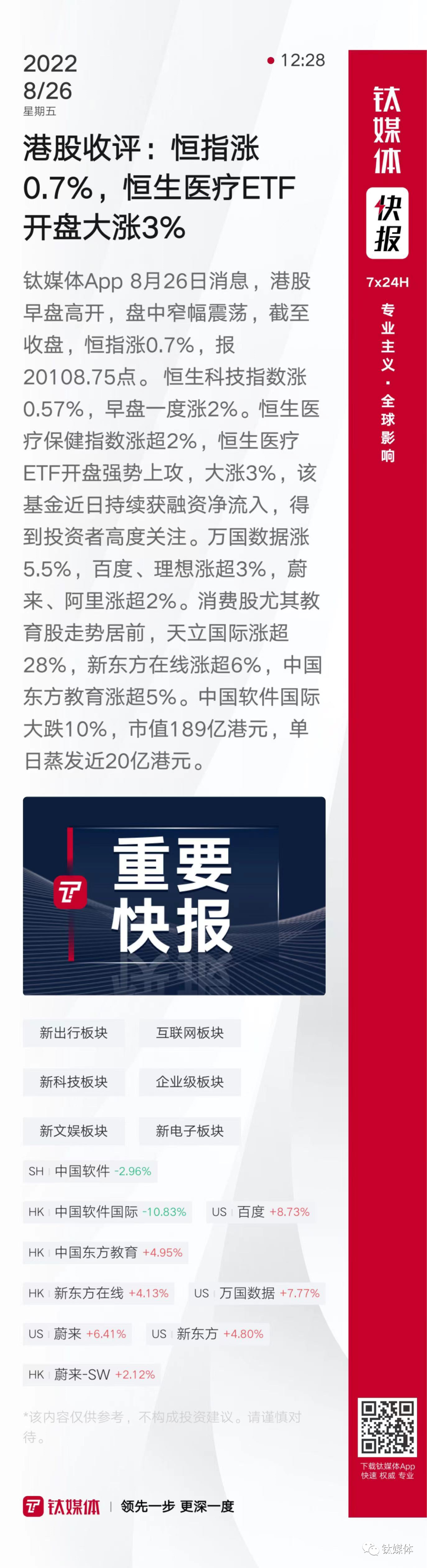 【港股收评:恒指涨0.7%,恒生医疗ETF开盘大涨3%】