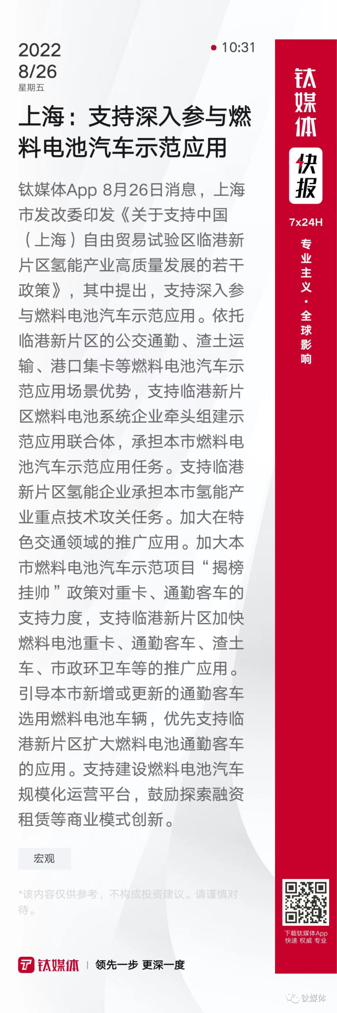 【上海:加快推动光伏制氢的示范应用,探索开展海上风电制氢示范应用】