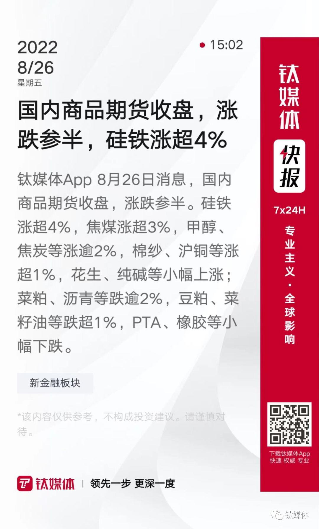 【国内商品期货收盘,涨跌参半,硅铁涨超4%】