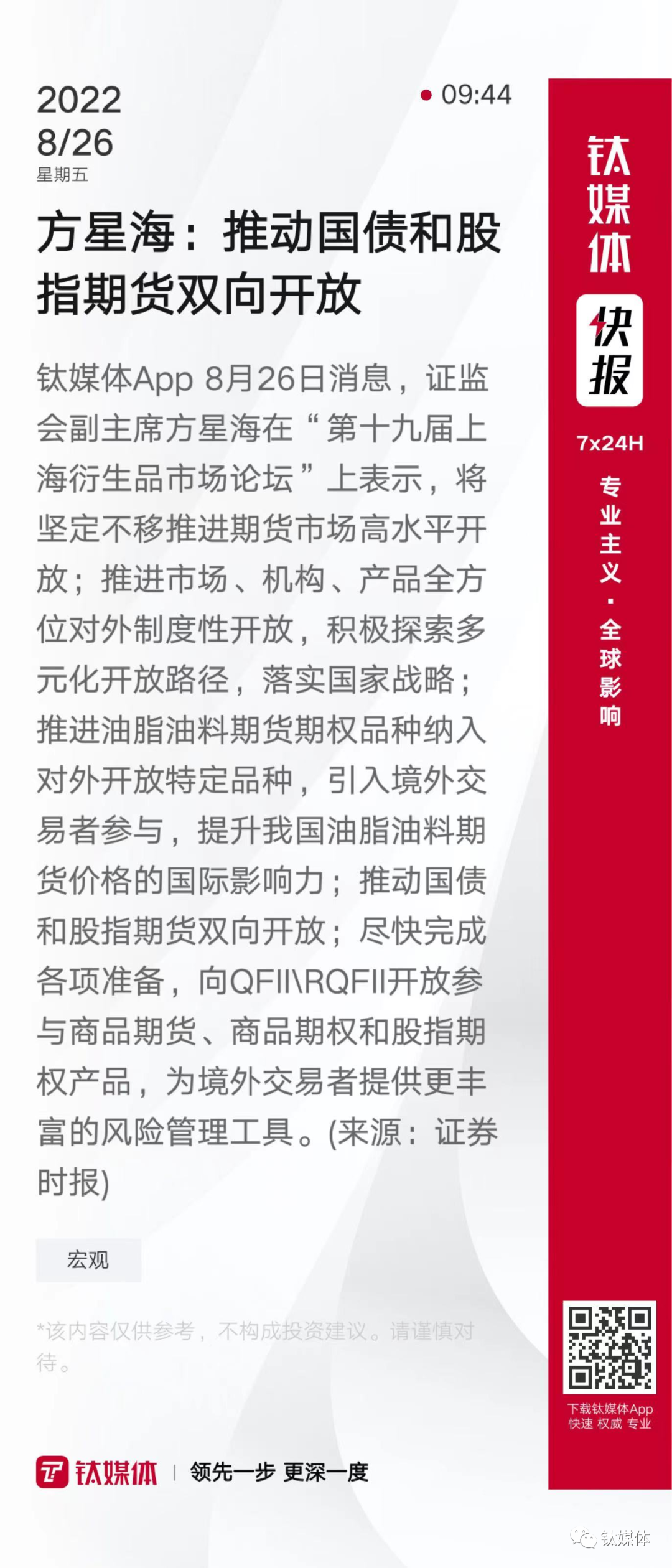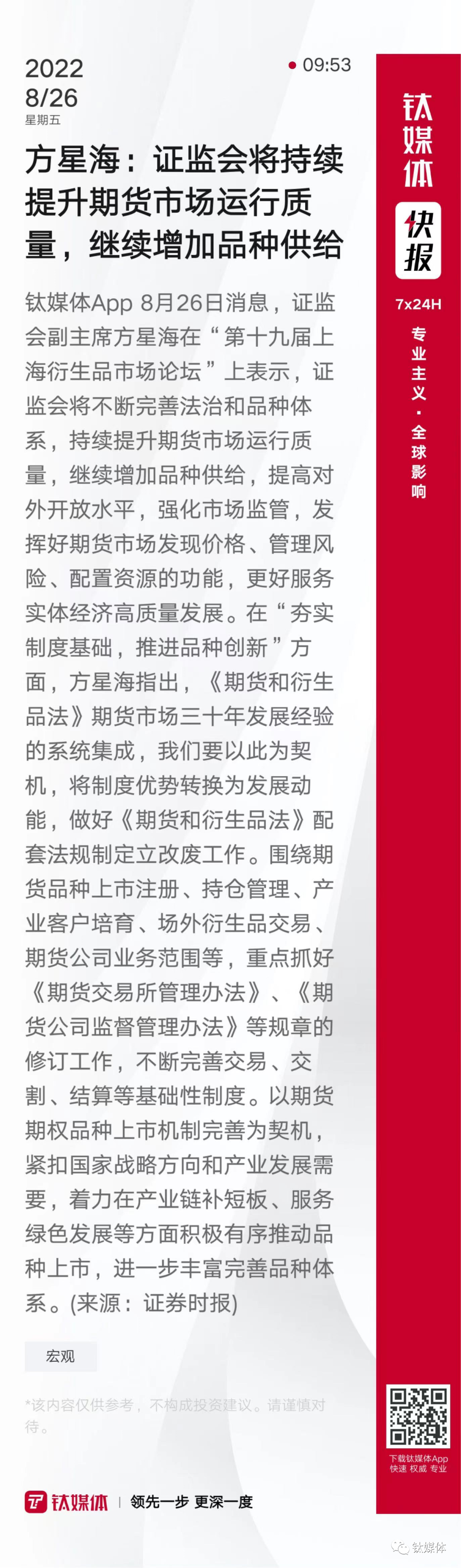 【方星海:证监会将持续提升期货市场运行质量,继续增加品种供给】