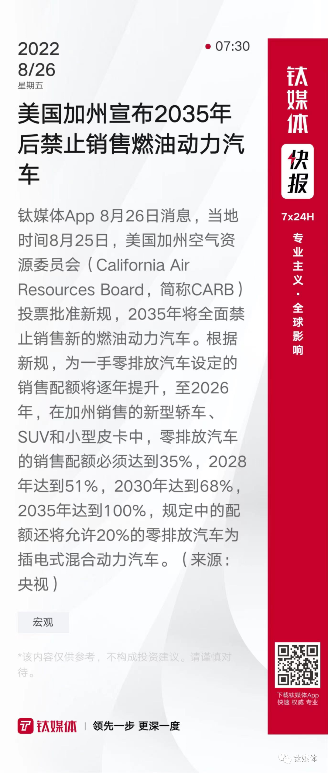 【美国加州宣布2035年后禁止销售燃油动力汽车】