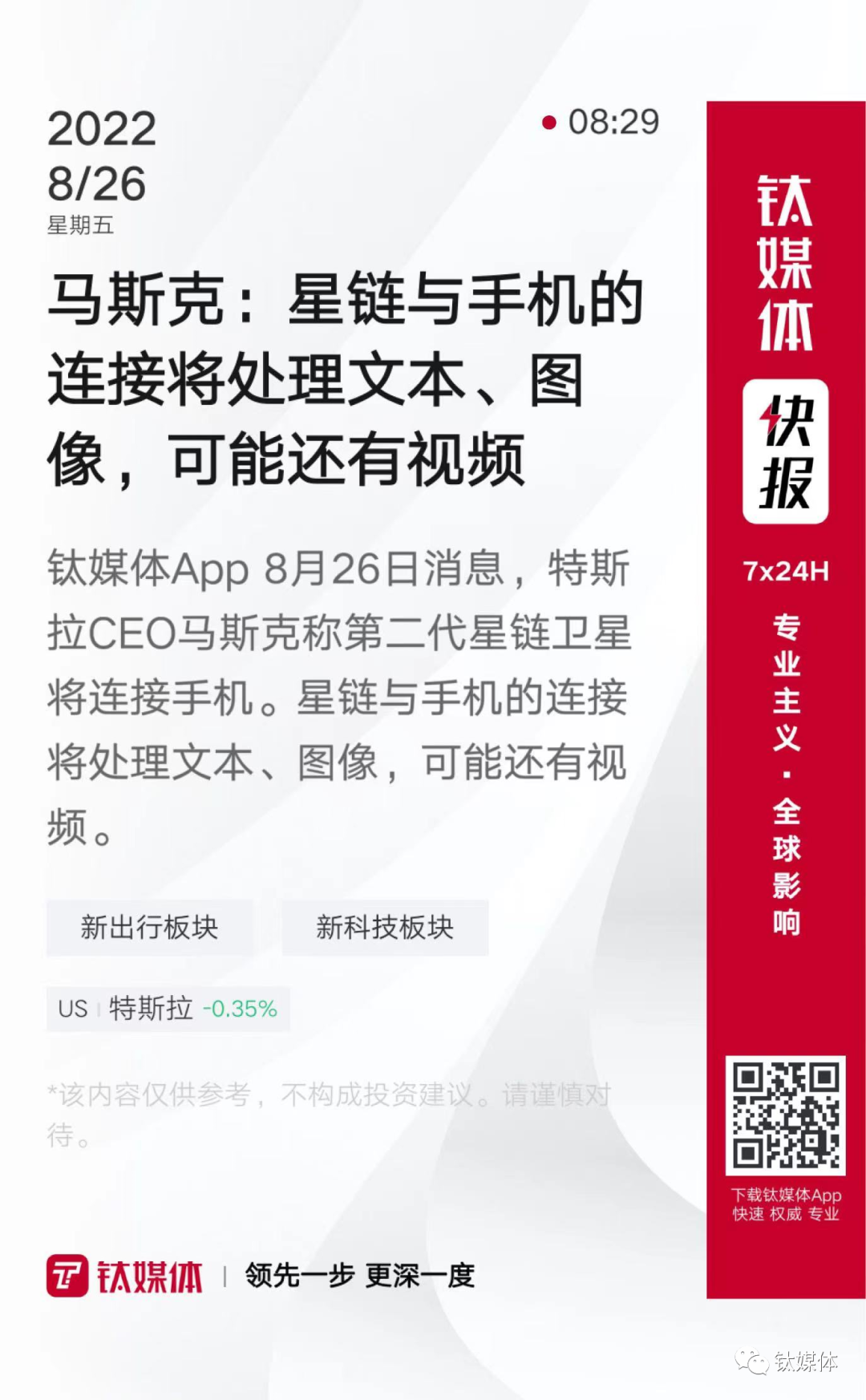 【马斯克:星链与手机的连接将处理文本、图像,可能还有视频】