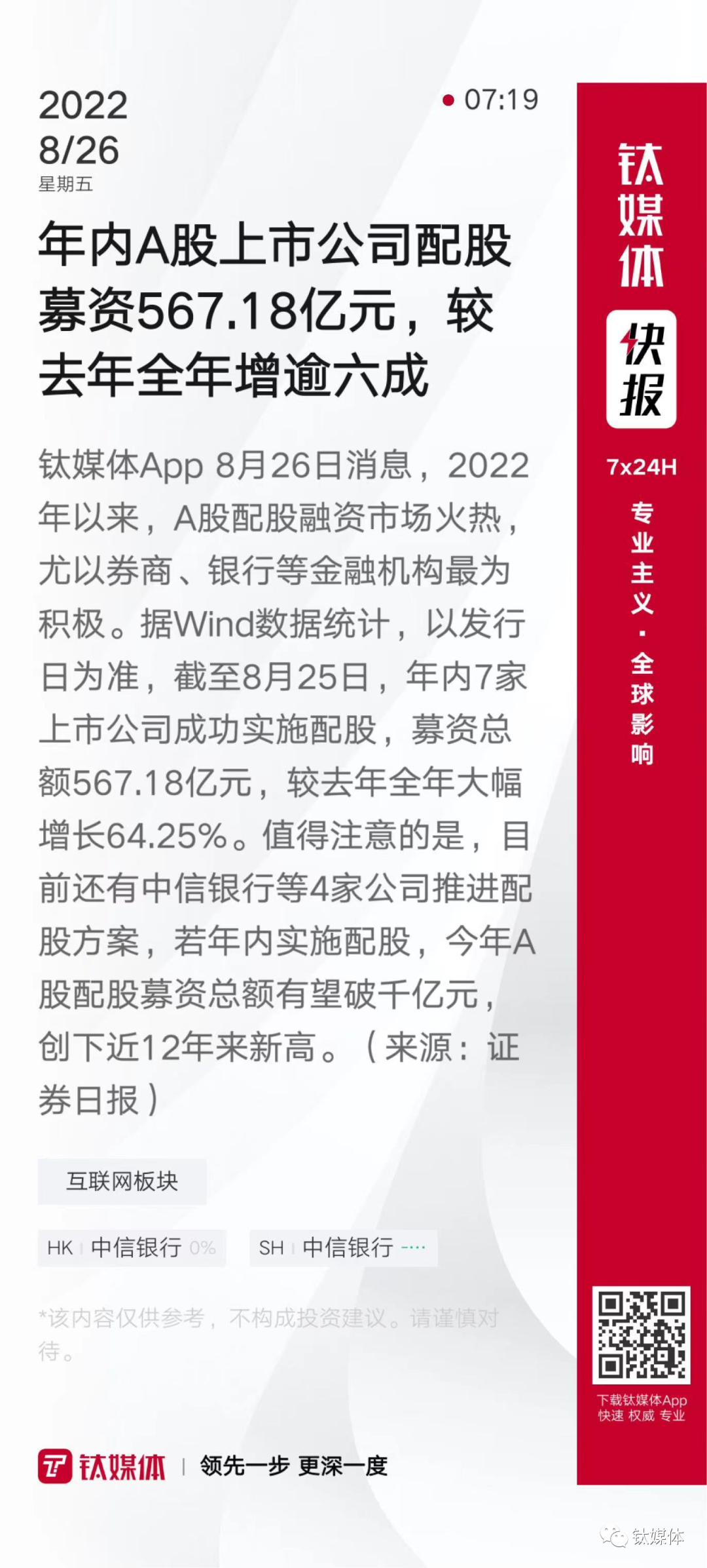 【年内A股上市公司配股募资567.18亿元,较去年全年增逾六成】
