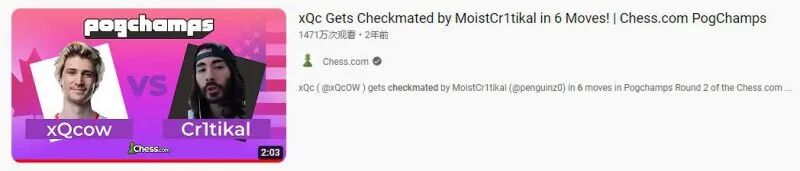 PogChamps大赛中xQc被6步将军的名场面在YouTube获得1500万播放量