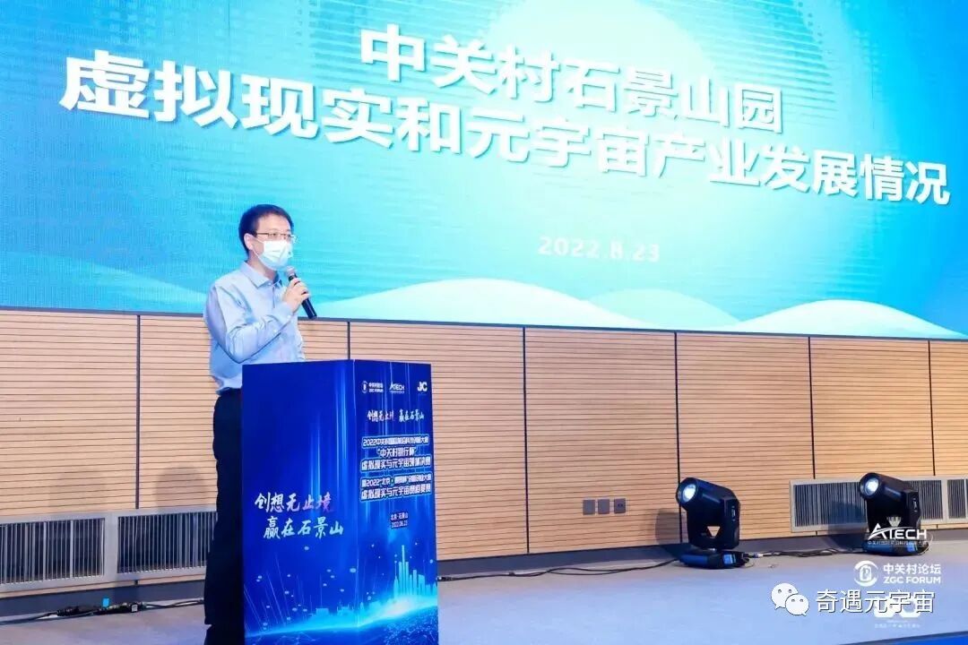 中关村石景山园管委会主任贾曦介绍了中关村石景山园。贾曦表示,中关村石景山园作为区域高精尖产业发展的主战场,是中关村“一区十六园”中的重要组成部分。园区围绕区域高精尖产业体系,聚焦虚拟现实、科幻、工业互联网、元宇宙等新兴产业领域,突破一批核心关键技术、推出一批高质量应用场景、打造一批产业创新平台、培育一批具有国际影响力的特色企业,在石景山区加快形成具有国际竞争力和技术主导权的特色产业集群。