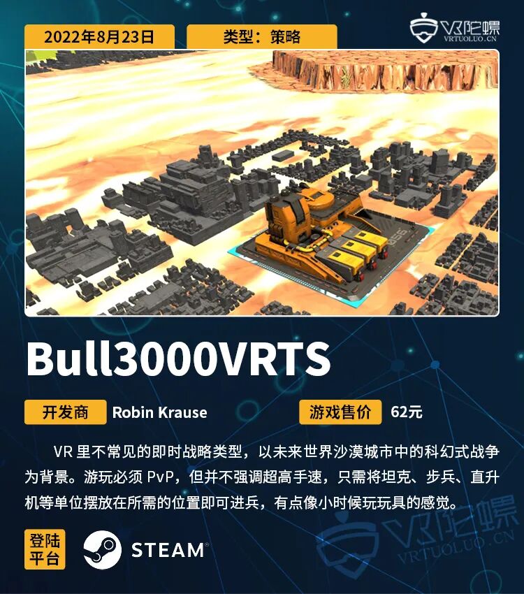 本周恰逢一年一度的科隆游戏展(Gamescom),今年终于回归线下,有超过30家XR相关公司参展,游戏情报也着实不少。而从8月27日至9月2日,China Joy也以线上展(CJ Plus)的新颖形式举办。相较之下本周的VR新作阵容就稍显冷清了。