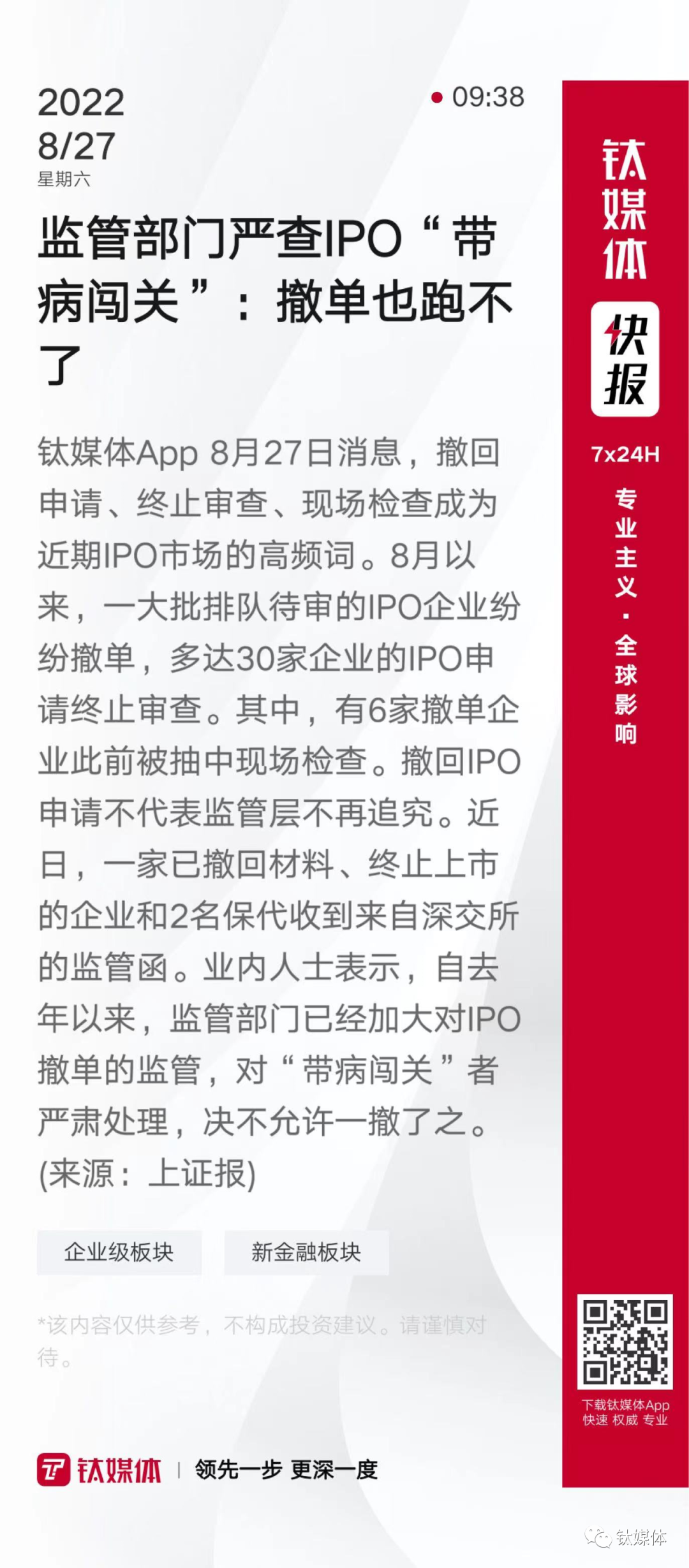 【监管部门严查IPO“带病闯关”:撤单也跑不了】