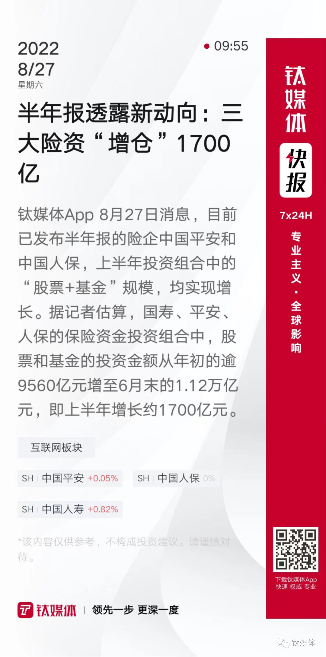 【半年报透露新动向:三大险资“增仓”1700亿】