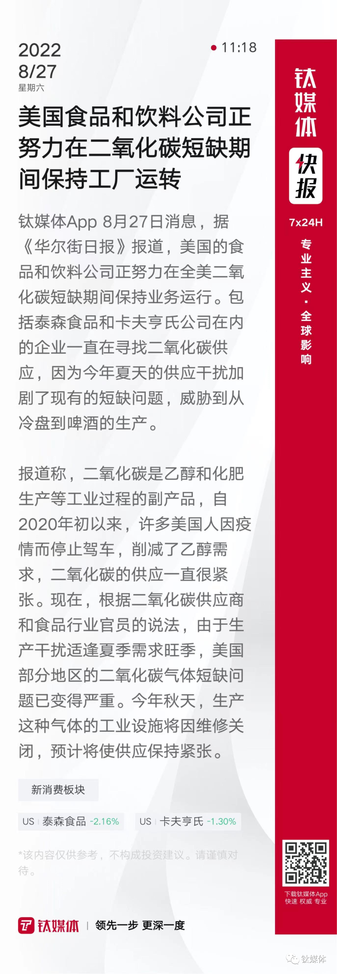 【美国食品和饮料公司正努力在二氧化碳短缺期间保持工厂转】