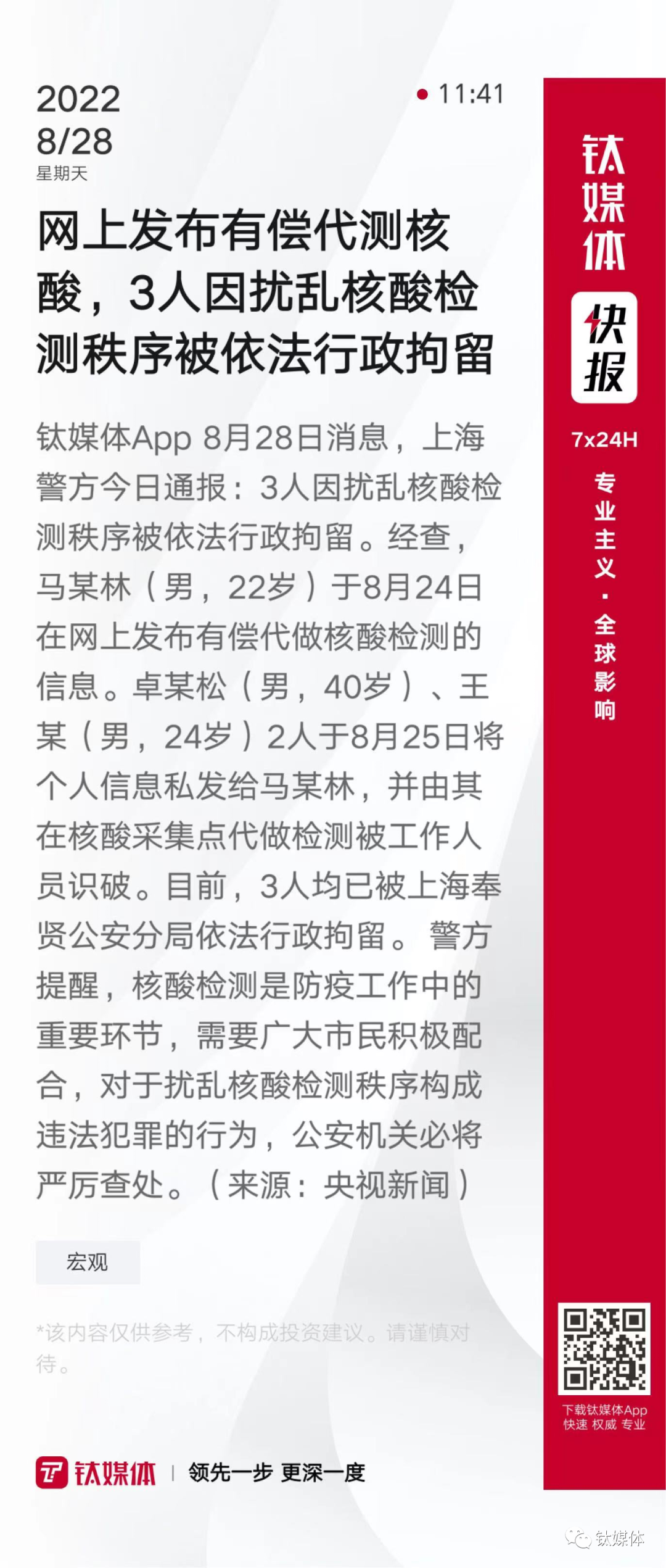 【网上发布有偿代测核酸,3人因扰乱核酸检测秩序被依法行政拘留】